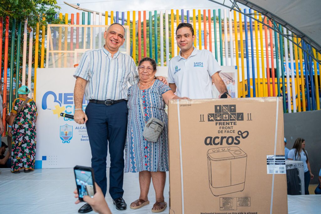El acto culminó con un espacio de integración donde el secretario invitó al alcalde Carlos Pinedo a dar apertura al concurso de premios, en el que se entregaron más de 30 obsequios, entre ellos neveras, lavadoras, televisores y otros elementos para el hogar, como muestra del compromiso con el bienestar y la alegría de las familias samarias.