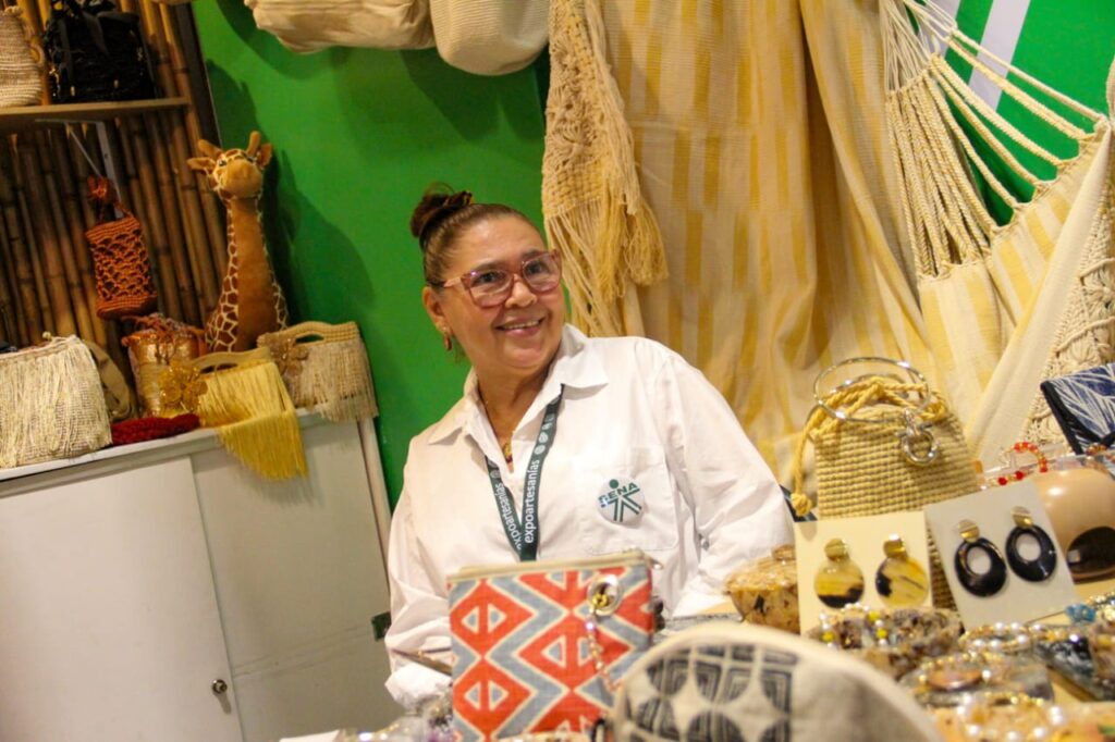 Entre las propuestas presentes se destacan iniciativas que resignifican los oficios tradicionales a través de la innovación y la sostenibilidad, como la elaboración de piezas artesanales a partir de fibra de plátano, un material extraído de residuos de poscosecha y transformado en carteras, calzado y objetos decorativos.